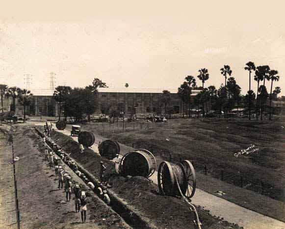 Laying 22,000 volt cable into Dharavi Receiving Station, May 1926.