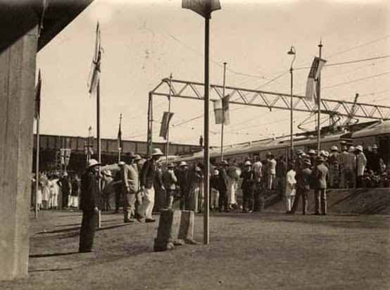 The crowd looking at the train on the opening of the electrified section on 5 January 1928.